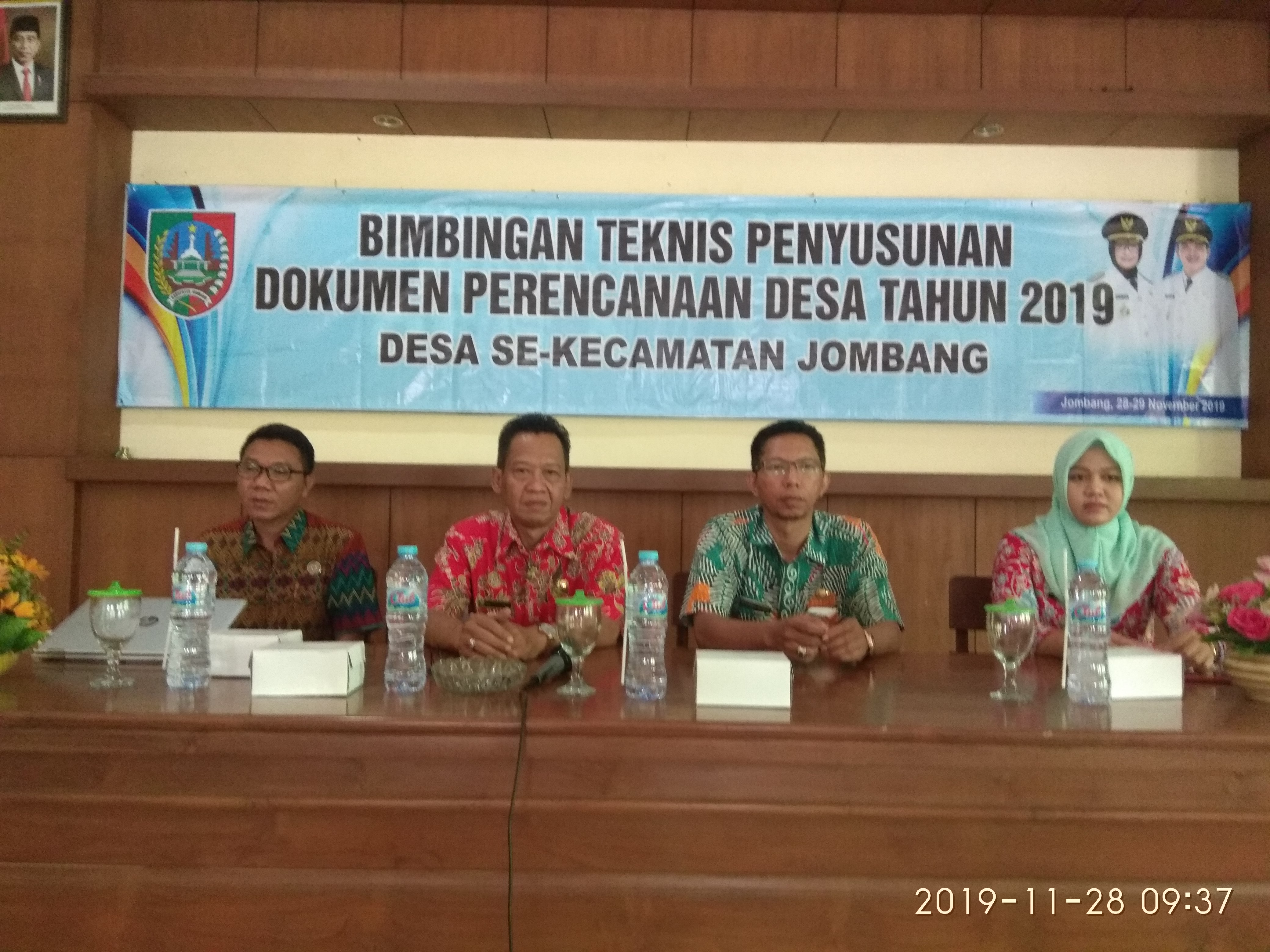 JOMBANGKAB.JOMBANG - Untuk meningkatkan pembangunan yang ada di Desa maka pada hari Kamis dan Jum'at 28-29 November 2019 Kecamatan Jombang mengadakan " BIMTEK PERENCANAAN PEMBANGUNAN DESA" yang bertempat di Gedung Pertemuan Desa Jabon dan dibuka oleh Sekcam Jombang