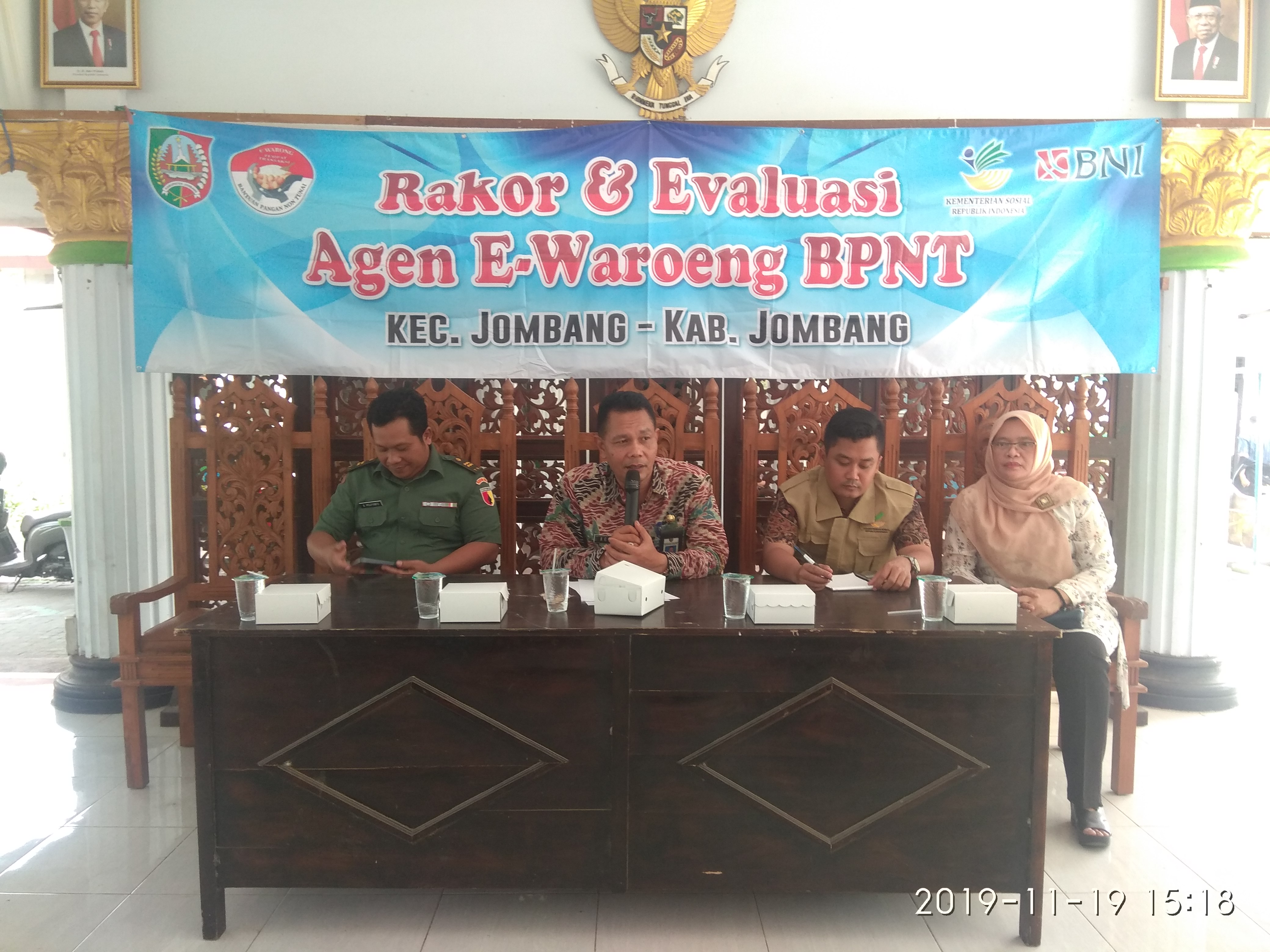 JOMBANGKAB.JOMBANG - Selasa, 19 November 2019 telah diadakan Rakor dan Evaluasi agen E-Waroeng BPNT bertempat di Pendapa Kecamatan Jombang.